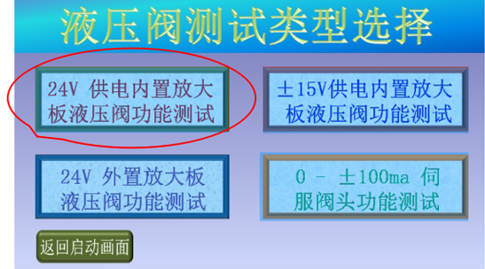 4、點(diǎn)擊“24V供電內(nèi)置放大板液壓閥功能測(cè)試”,進(jìn)入?yún)?shù)設(shè)定畫面;
