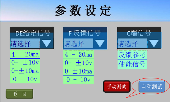 7、手動(dòng)測(cè)試基本正常后,點(diǎn)擊屏幕左下方的返回鍵,返回參數(shù)設(shè)定畫面;
